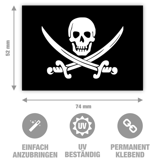 Piraten - Flagge - Jolly Roger / Totenkopf - Aufkleber - 7,4 x 5,2 cm